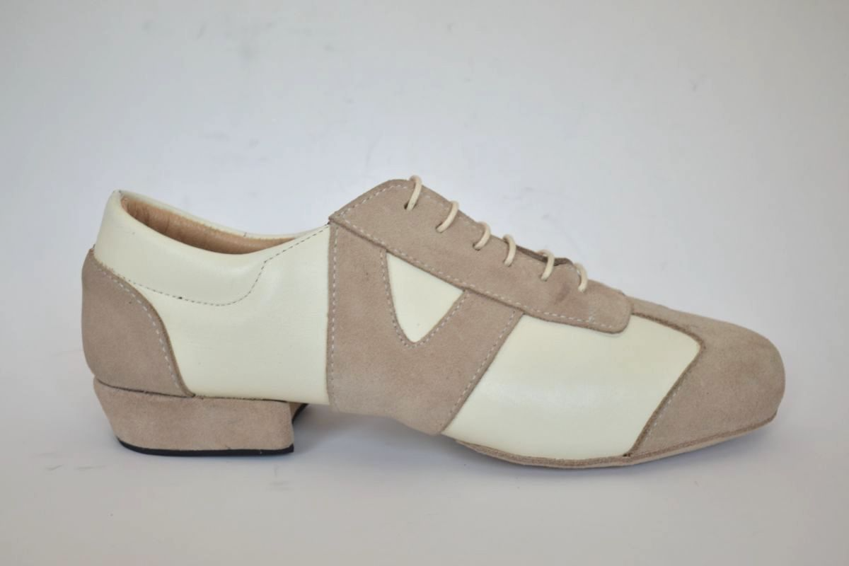 Unique dance shoe, suitable for practice and for the milonga, Oxford style, made of beige matte and suede leather