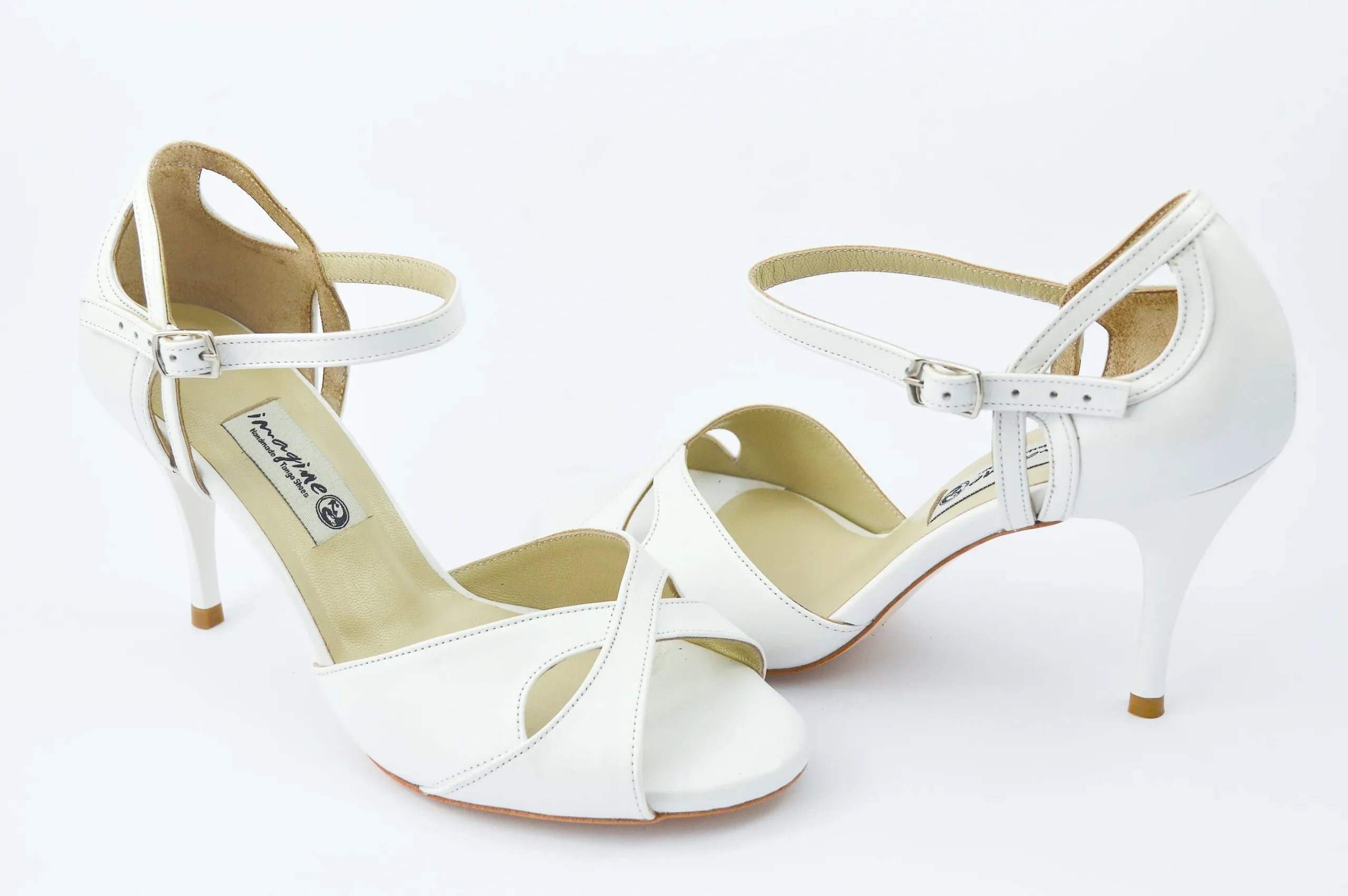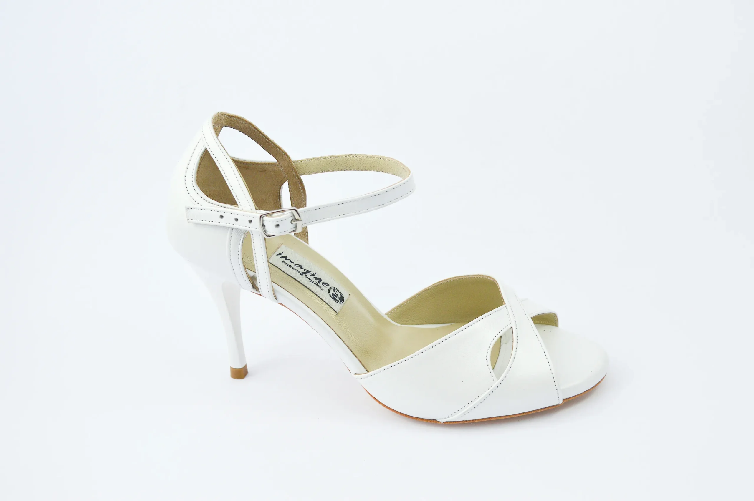 Classic peep-toe design crafted from distinctive soft white pearl leather that stands out.