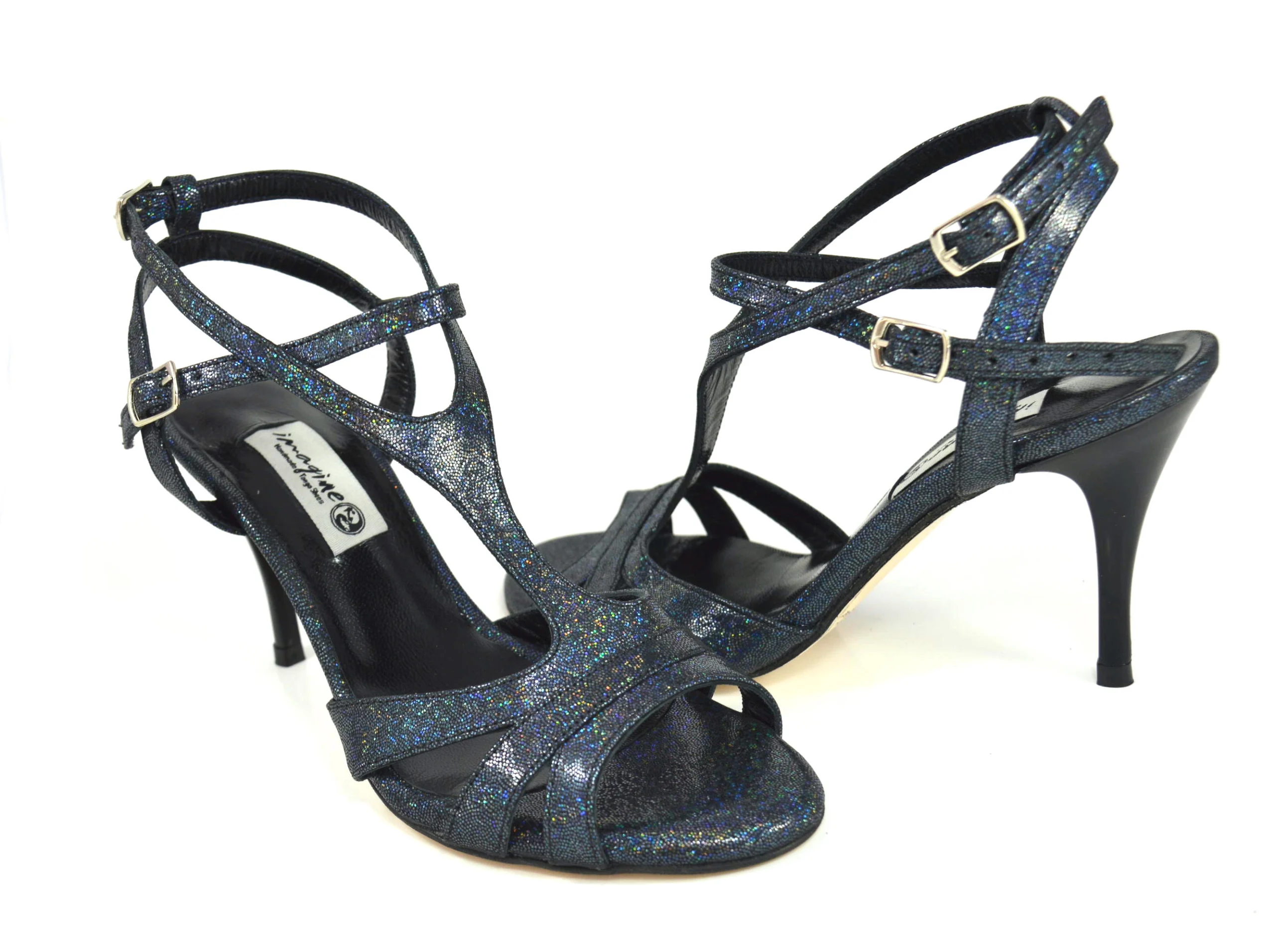 Wonderful new design in striking black pearl leather. A dressy shoe, a jewel for your feet.