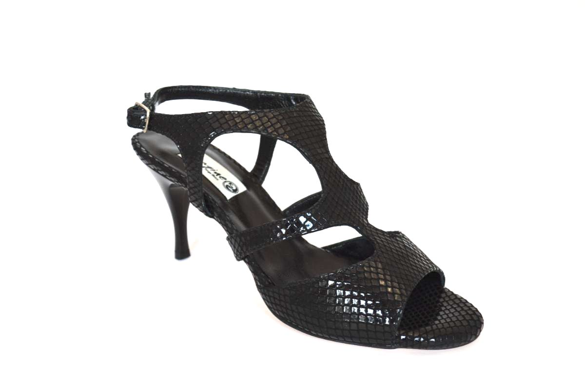 Stunning new open-heel design, crafted from very soft black snake leather