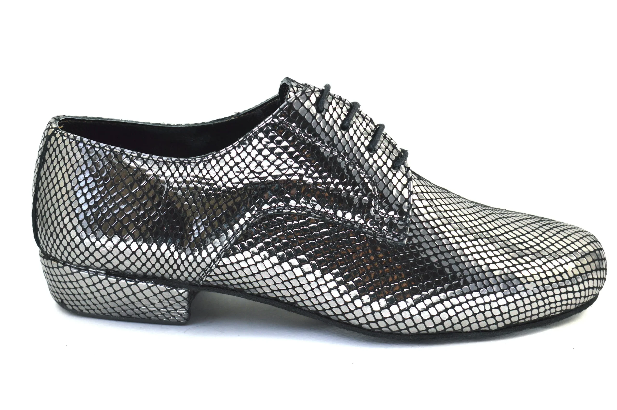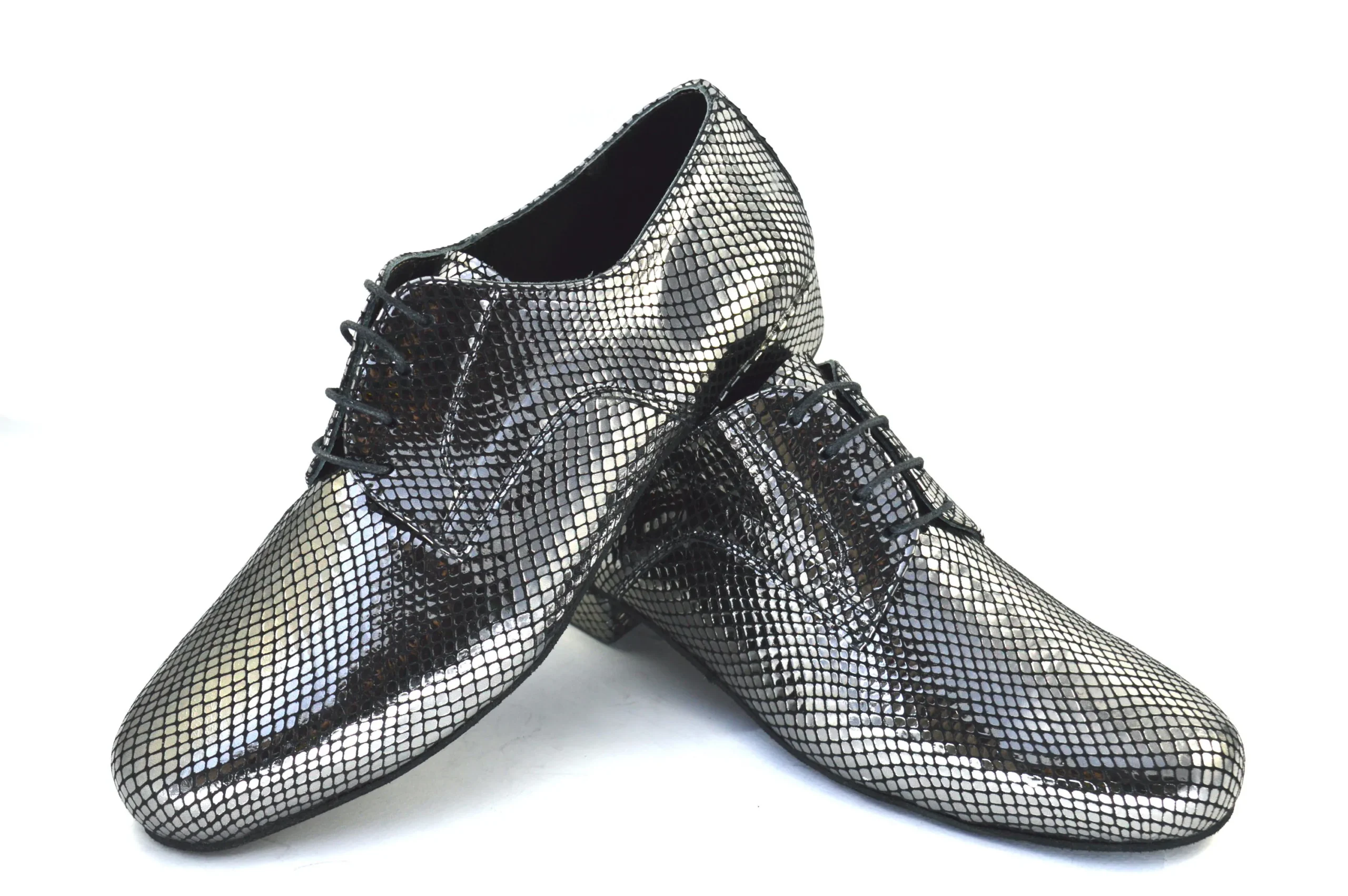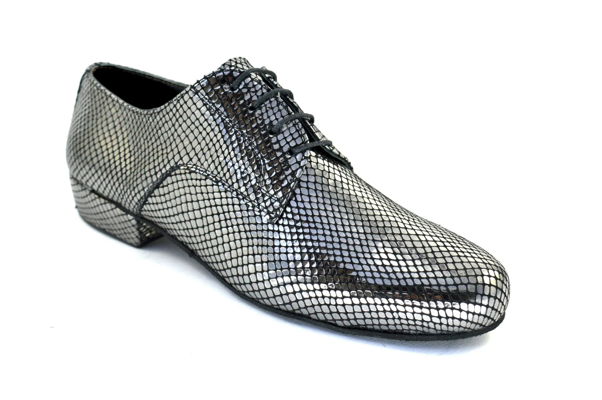 Κλασικό σχέδιο Plain toe τύπου Derby από ασημί δέρμα φίδι για casual αλλά και επίσημες εμφανίσεις.