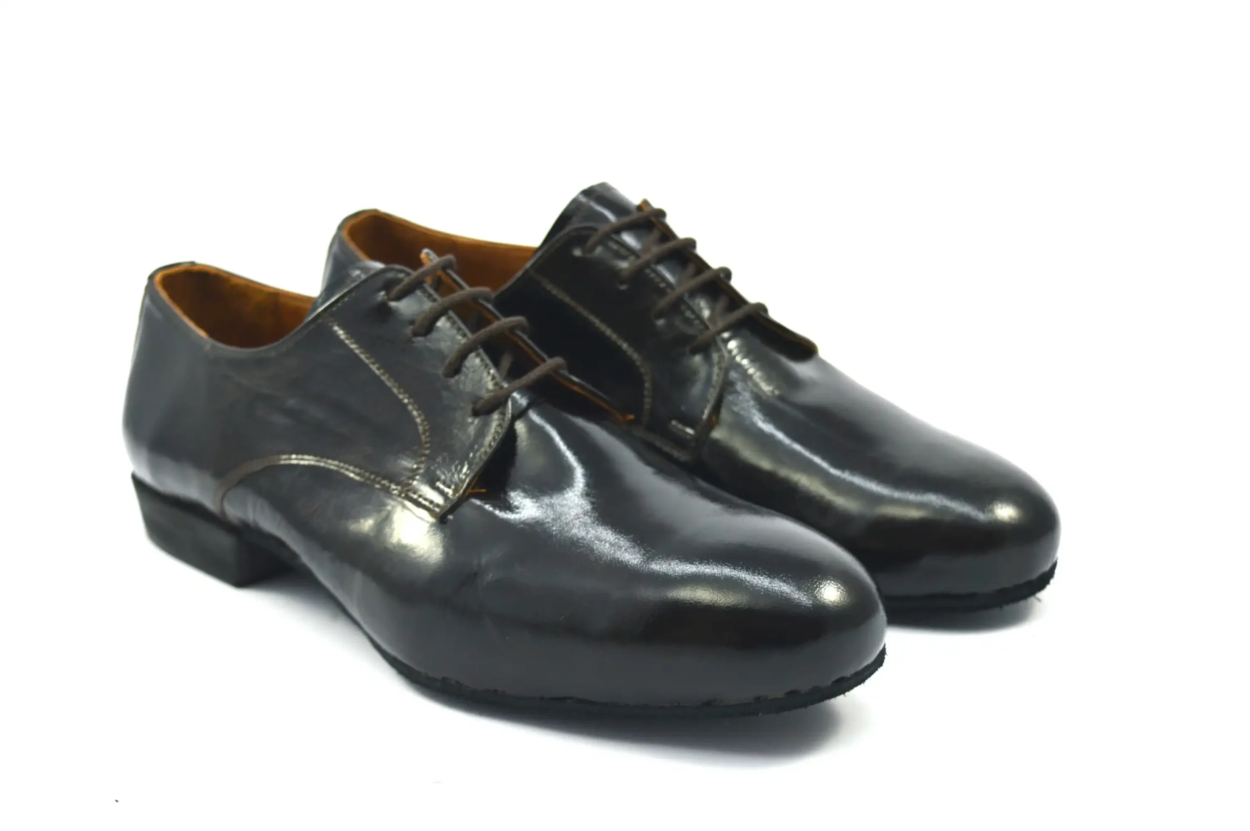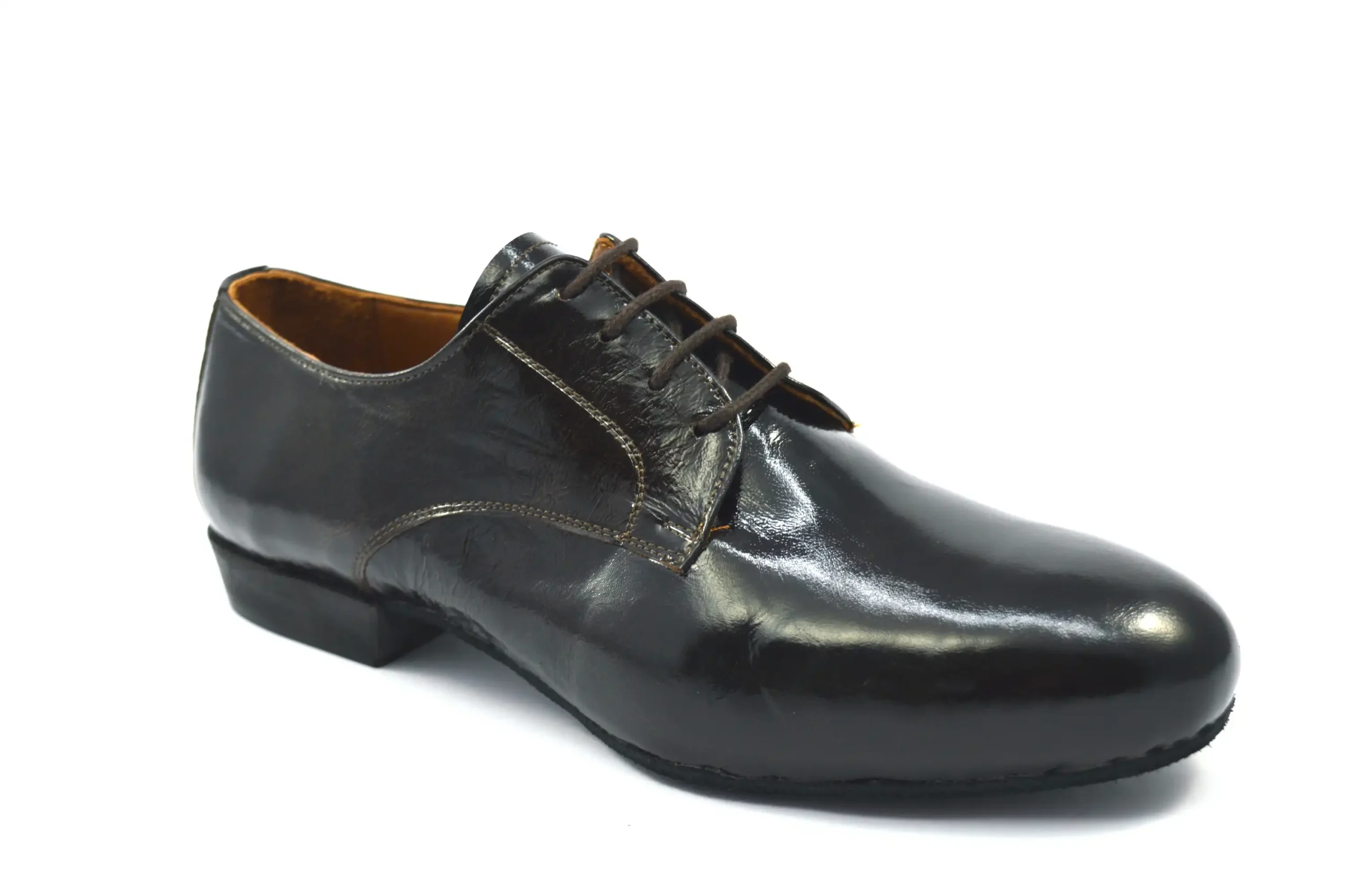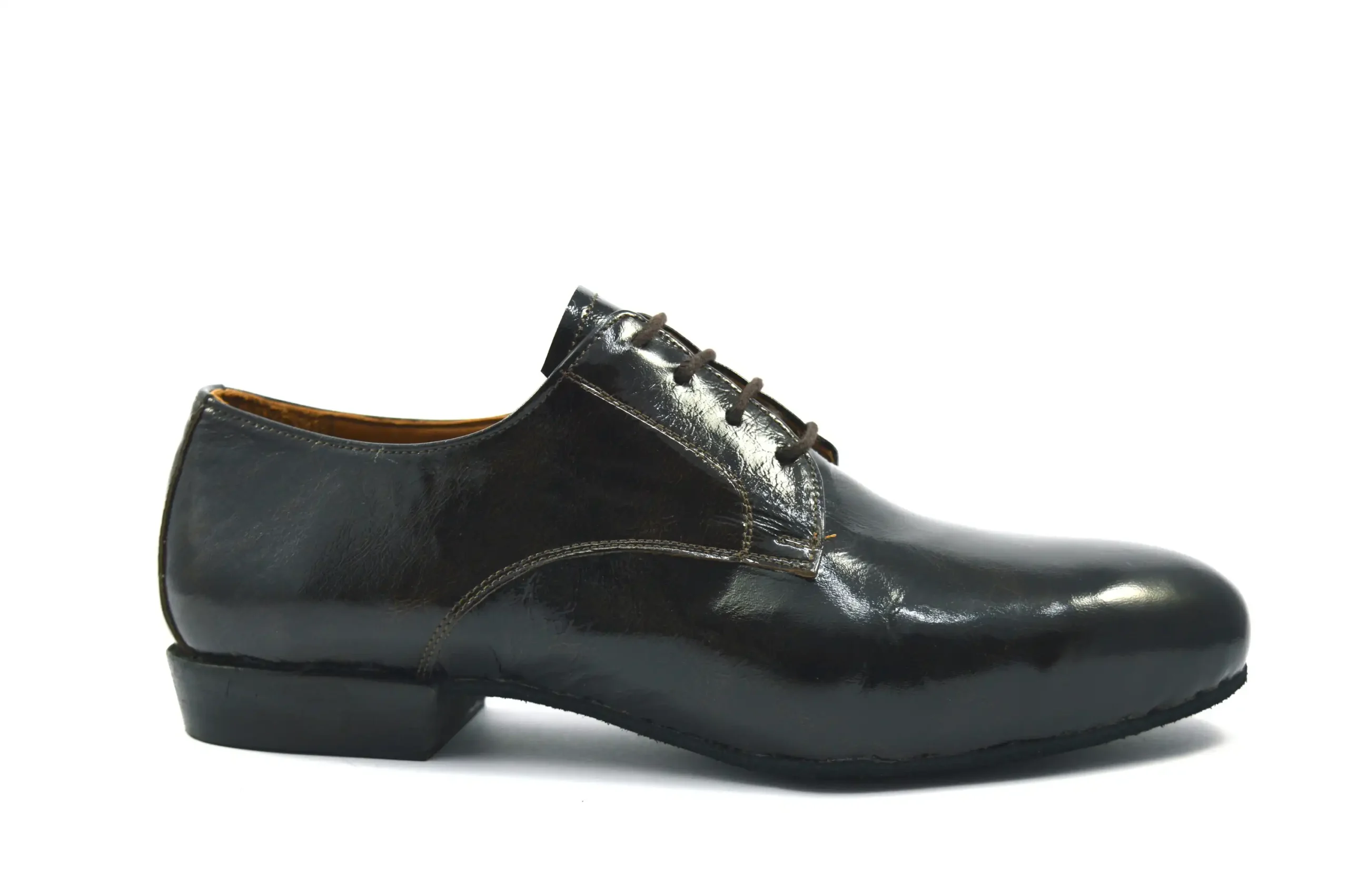 Κλασικό σχέδιο Plain toe τύπου Derby από σκούρο καφέ δέρμα λουστρίνι για επίσημες εμφανίσεις.