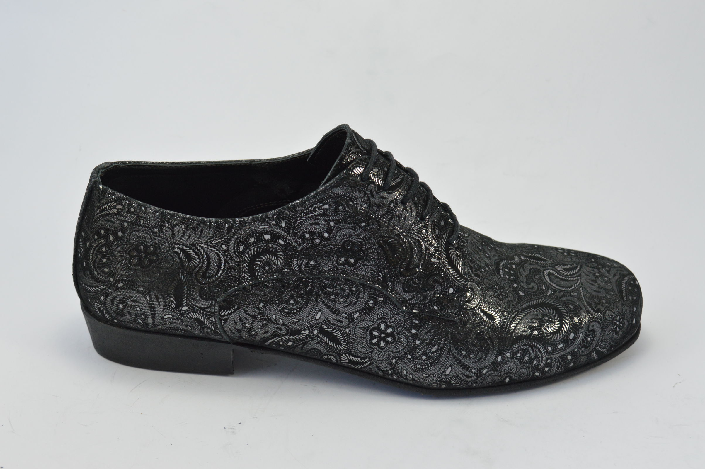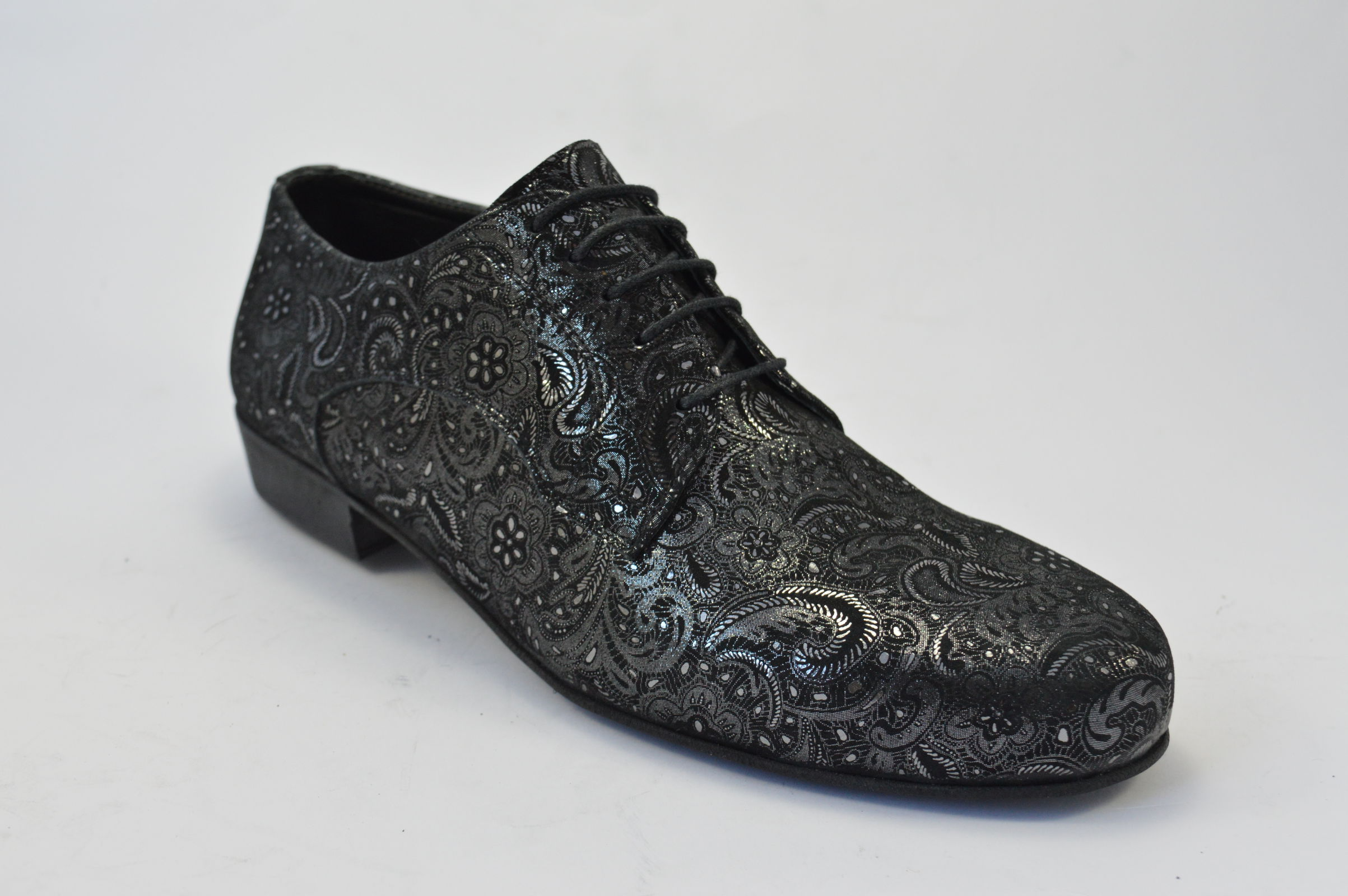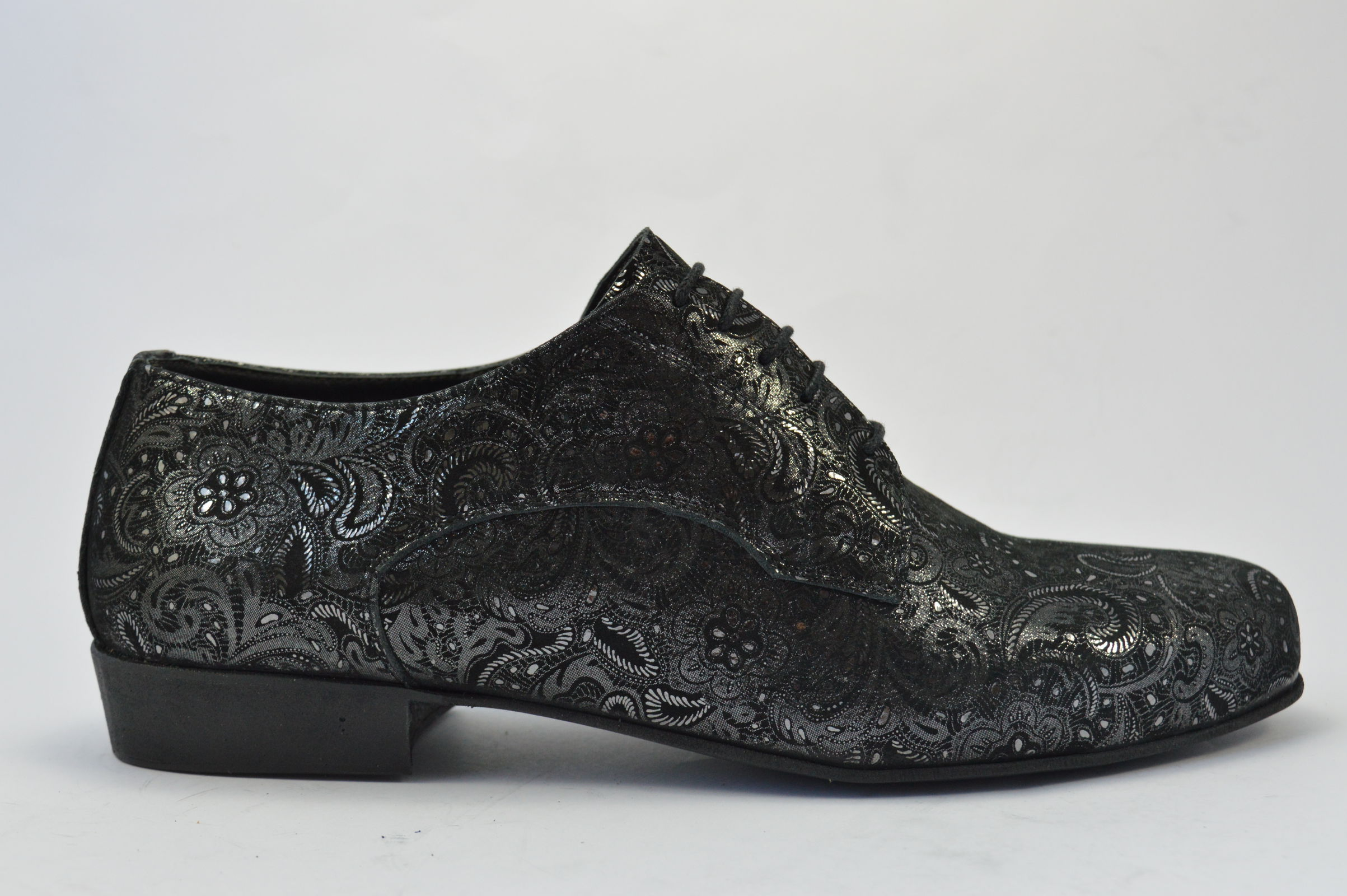 Ανδρικό παπούτσι χορού αργεντίνικου τάνγκο από μαύρο-ασημί λαχούρι δέρμα