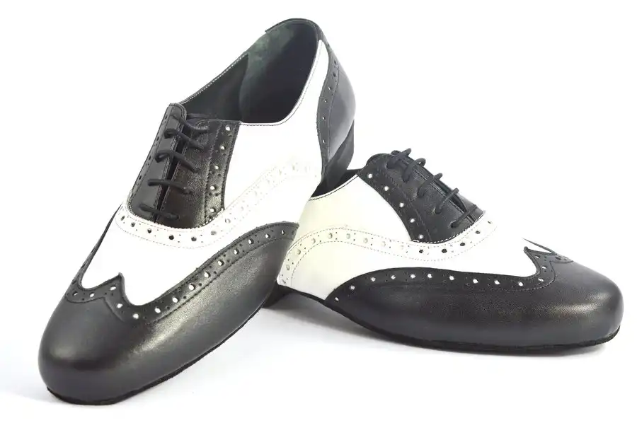 Ανδρικό παπούτσι τάνγκο από λευκό και μαύρο ματ δέρμα