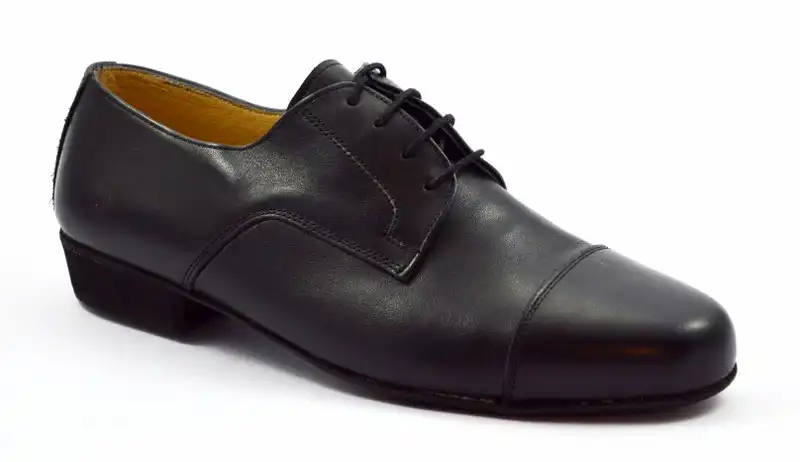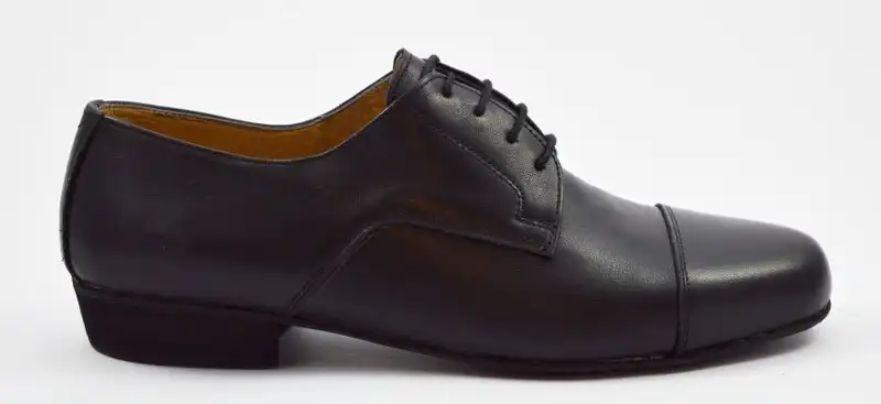 Κλασικό σχέδιο Derby τύπου Cap Toe από μαλακό μαύρο δέρμα. Πολύ διακριτικό απλό σχέδιο κατάλληλο για όσους ξεκινούν το Τάνγκο.