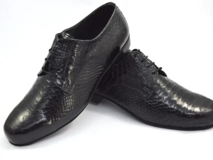 Ανδρικό παπούτσι χορού τάνγκο Plain Toe από μαύρο κροκό δέρμα