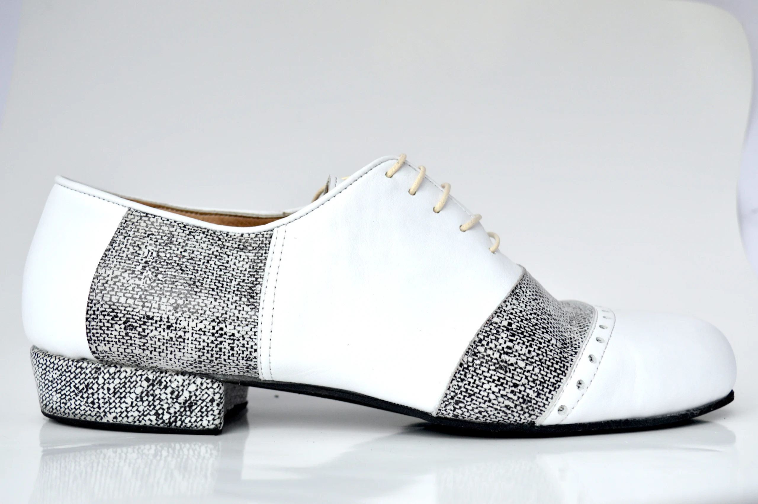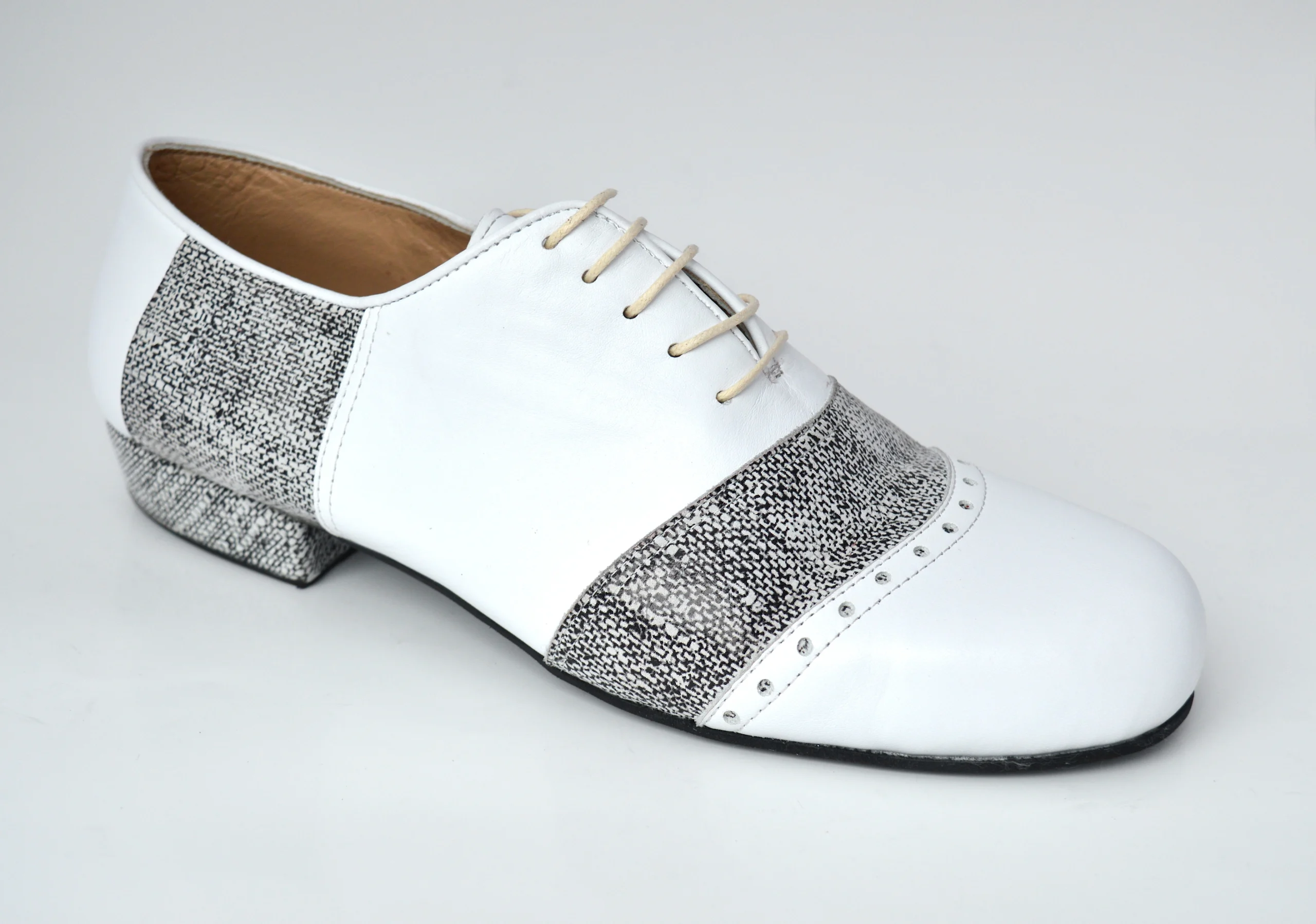 Ανδρικό παπούτσι τάνγκο από λευκό δέρμα και ασπρόμαυρο σχέδιο