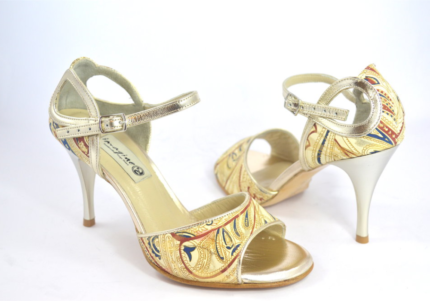 Γυναικείο παπούτσι tango από μπεζ σουέτ δέρμα με χρυσά floral σχέδια