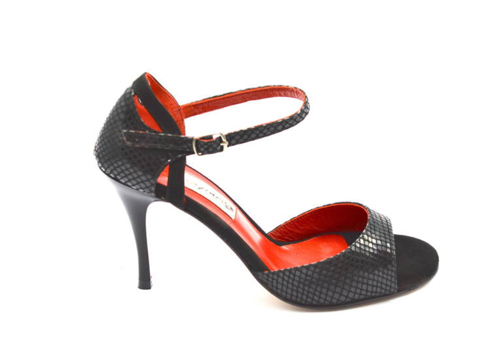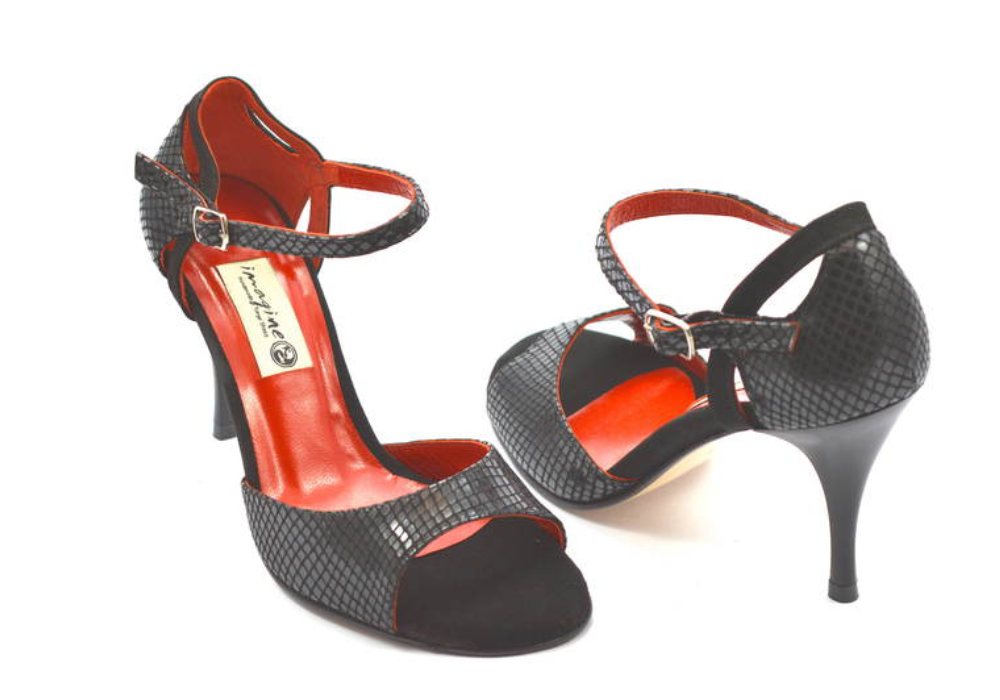 Κλασικό, διαχρονικό σχέδιο σε μαύρο δέρμα φίδι, με κόκκινη εσωτερική επένδυση, και σουέτ δέρμα στο πάτημα των δακτύλων. Για επίσημες εμφανίσεις όπου θα ξεχωρίζετε σε κάθε μιλόνγκα, σε κάθε πίστα.