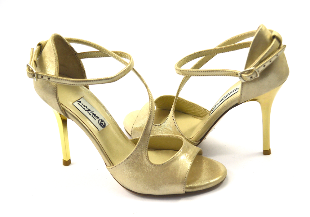 Ολοκαίνουριο σχέδιο, με κλασικό δέσιμο στον αστράγαλο αλλά και λοξό στο κουντεπιέ. Από πολύ εντυπωσιακό μπεζ-χρυσό μαλακό δέρμα πέρλα για επίσημες και casual εμφανίσεις.