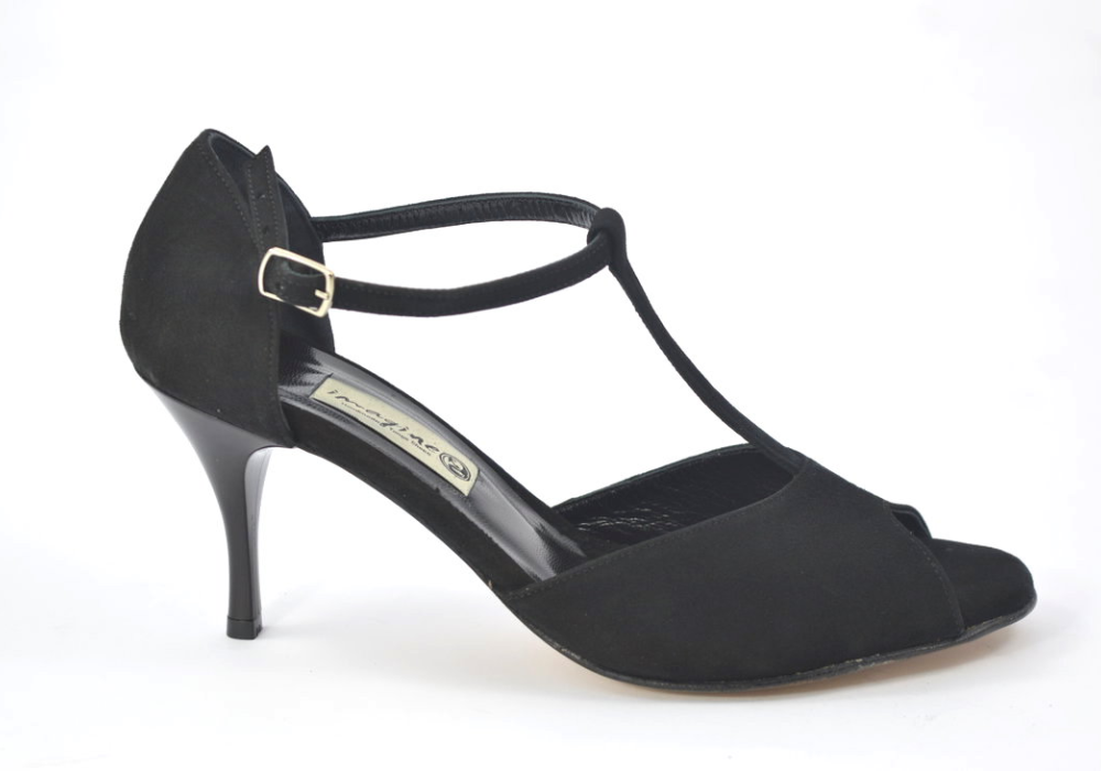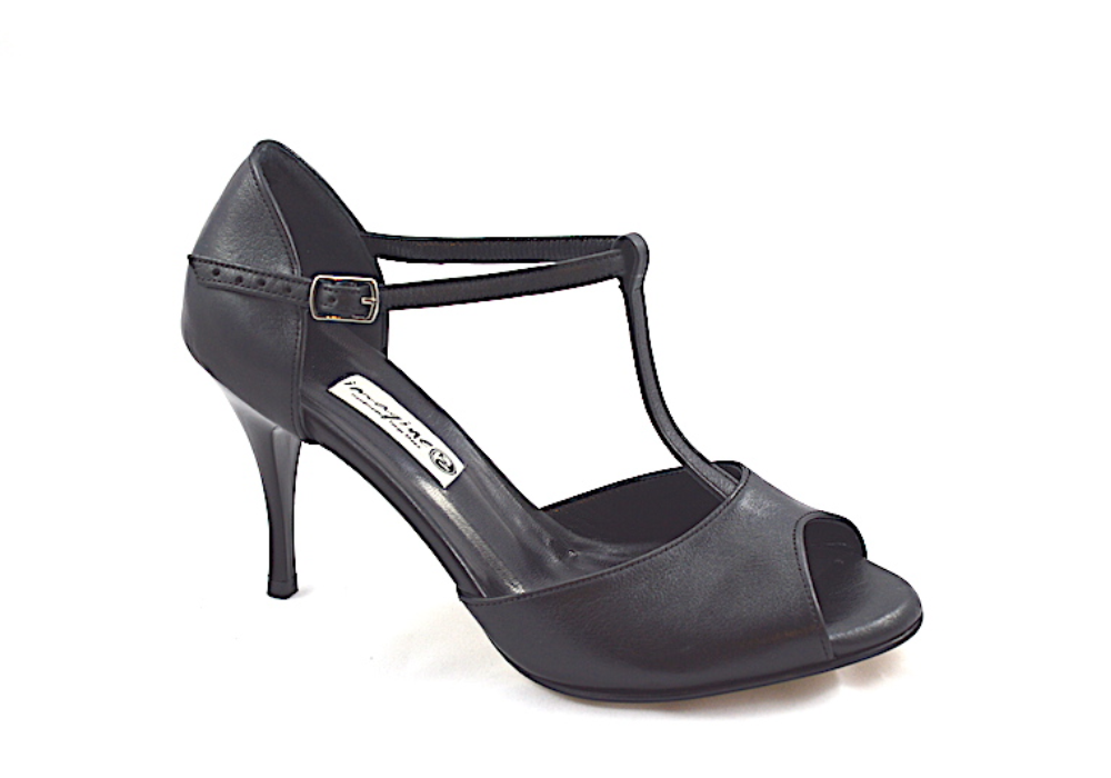 Κλασικό σχέδιο peep toe με ρυθμιζόμενη μπαρέτα “Τ” και κλειστή φτέρνα από μαλακό μαύρο δέρμα.