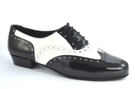 Ανδρικό παπούτσι τάνγκο από λευκό και μαύρο δέρμα λουστρίνι